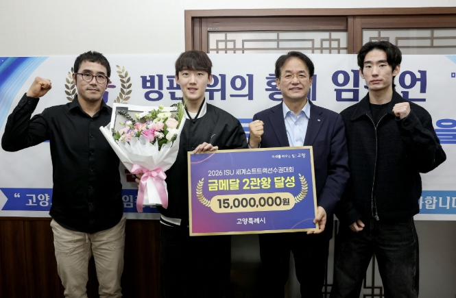[코리아 이슈저널=홍춘표 기자] 고양특례시는 캐나다 몬트리올에서 열린 ‘2026 ISU 세계 쇼트트랙 선수권대회’에서 개인전 2관왕을 달성하며 세계 최정상의 기량을 입증한 빙상팀 임종언 선수를 지난 23일 초청해 격려 오찬·간담회를 진행했다.