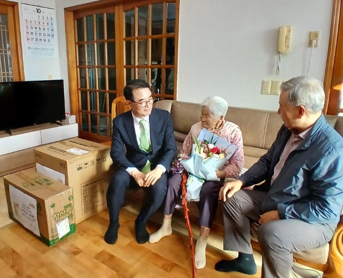 ▲ 100세 어르신 장수축하물품 및 장수지팡이 전달 |