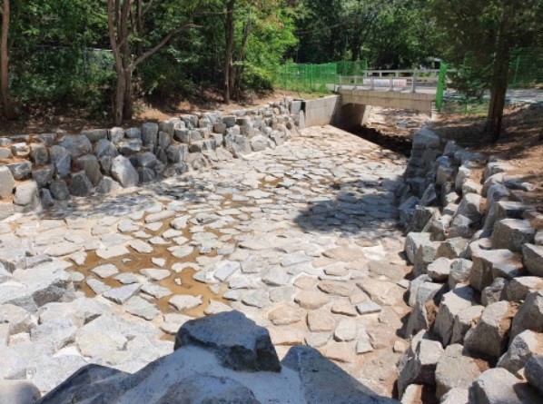 또한 계류양안과 계상의 침식을 예방하기 위해 큰돌기슭막이와 큰돌찰붙임을 실시했다.