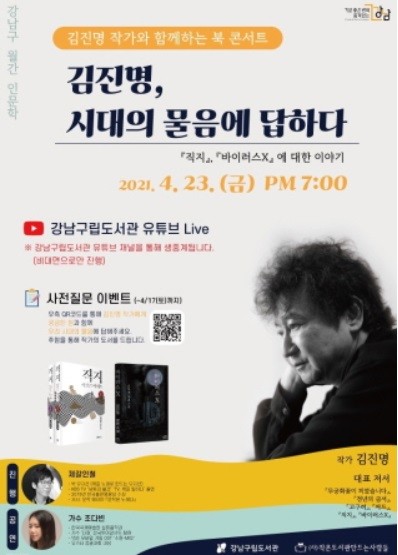 한편 강남구는 지난 2019년도부터 김영하 작가와 유현준 건축가, 이국종 교수 등을 초청하며 강연과 공연, 토론 등 다채로운 형식의 '주제가 있는 월간 인문학' 행사를 개최해 왔다.