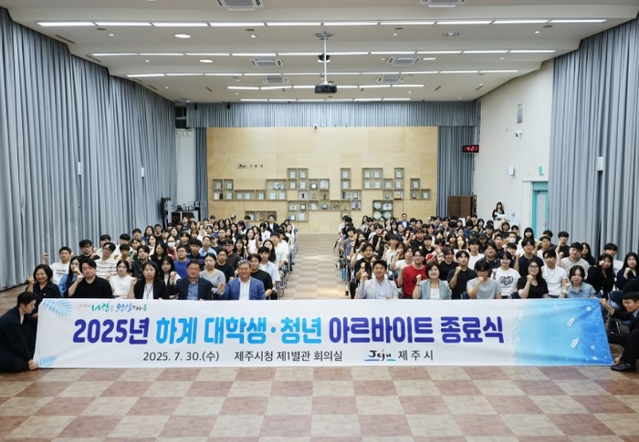 [코리아 이슈저널=김태훈 기자] 제주시는 30일 시청 1별관 회의실에서 ‘2025년 하계 대학생·청년 아르바이트’ 종료식을 개최했다.