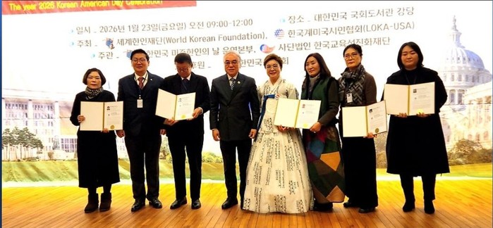[코리아 이슈저널 = 최윤옥 기자] 세계한인재단은 2026년 1월 23일 대한 민국 국회도서관에서 미주한인이민 123주년, '제4회 대한민국 미주한인의 날 기념대회'를 성황리 개최했다. 이날 행사에는 미주 한인 사회 주요 인사와 학계, 문화예술계, 시만 단체 관계자들이 참석해 대강당을 가득 메우며 행사 시작 전부터 높은 관심을 보였다.