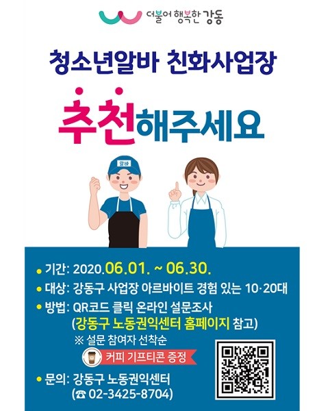 강동구 청소년알바친화사업장 인증사업 시작