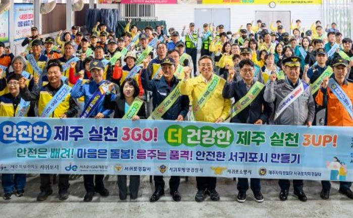 이날 캠페인은 ‘안전은 배려, 마음은 돌봄, 음주는 품격’이라는 슬로건 아래 ‘더 안전한 제주 실천 3GO!(안전교육 받GO·안전신고 하GO·음주운전 말GO)’, ‘더 건강한 제주 실천 3UP!(마음살핌 UP!·이웃안부 UP!·함께걷기 UP!)’의 실천과제를 중심으로 안전수칙 홍보, 안전신문고 사용 안내 등 시민이 체감할 수 있는 현장 중심의 홍보 활동을 펼쳤다.