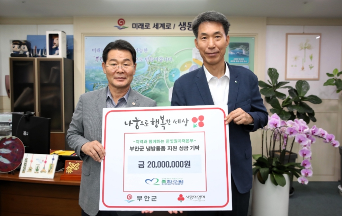 | ▲ 한수원(주) 한빛원자력본부, 냉방용품 지원 성금 2000만원 부안군 기탁 |