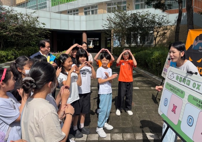 현장에서는 ‘OX 퀴즈를 통한 아동학대 예방 교육’이 진행됐다. 학생들은 문제를 듣고 손동작으로 OX를 표시하며 참여해 아동학대 예방 메시지를 쉽고 직관적으로 이해하는 시간을 가졌다.