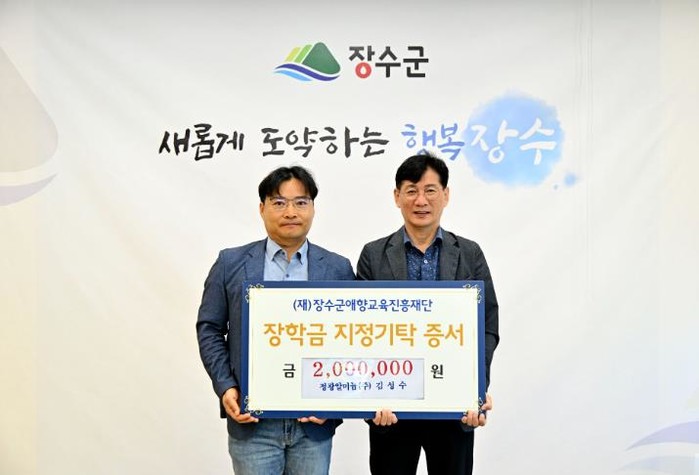 [코리아 이슈저널=김종오 기자] (재)장수군애향교육진흥재단은 정광알미늄㈜ 김성수 부사장이 고향인 장수 지역 인재 양성과 학업 지원을 위해 장학금 200만 원을 기탁하며 따뜻한 나눔을 실천했다고 11일 밝혔다.