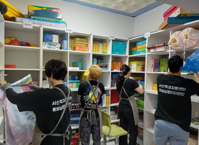 이번 지원은 학교현장의 교원업무 경감 및 교육환경 최적화를 위해 운영 중인 ‘특별실 정리 지원단’이 주축이 되어 진행되며, 서산성봉학교 학습자료실 내 노후 및 불용 교구의 정리·폐기와 공간 재배치 등을 통해 학생들이 보다 쾌적하고 효율적인 교육환경에서 학습할 수 있도록 돕는 것을 목적으로 한다.