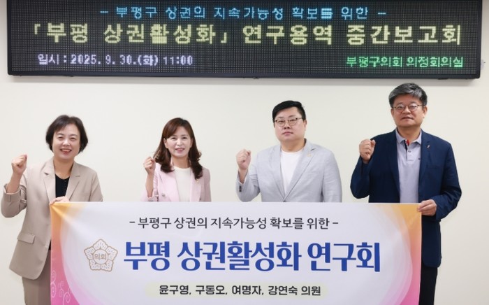 [코리아 이슈저널=홍춘표 기자] 인천시 부평구의회 의원연구단체인 부평 상권활성화 연구회가 9월 30일 ‘부평 상권활성화 연구 용역’ 중간보고회를 개최했다고 9월 30일 밝혔다.