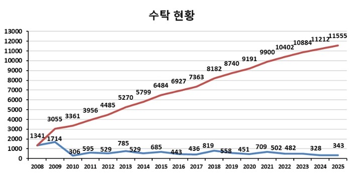 | ▲ 수의생명자원 누적 수탁 현황(2008-2025) |