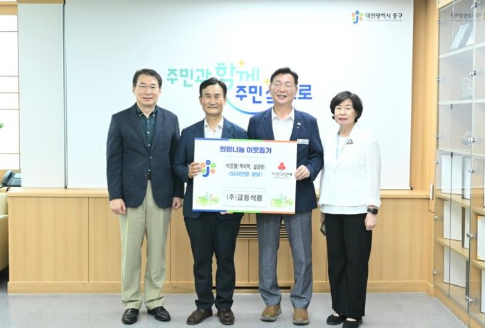 김제선 중구청장은 “지역사회를 위해 따뜻한 기부를 실천해주신 ㈜교동식품 측에 감사드리며, 주민 모두가 함께 나누고 더불어 살아가는 중구를 만들기 위해 최선을 다하겠다”라고 답했다.