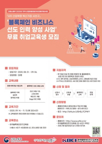 서초구, '블록체인 선도인력 양성과정' 취업교육생 모집
