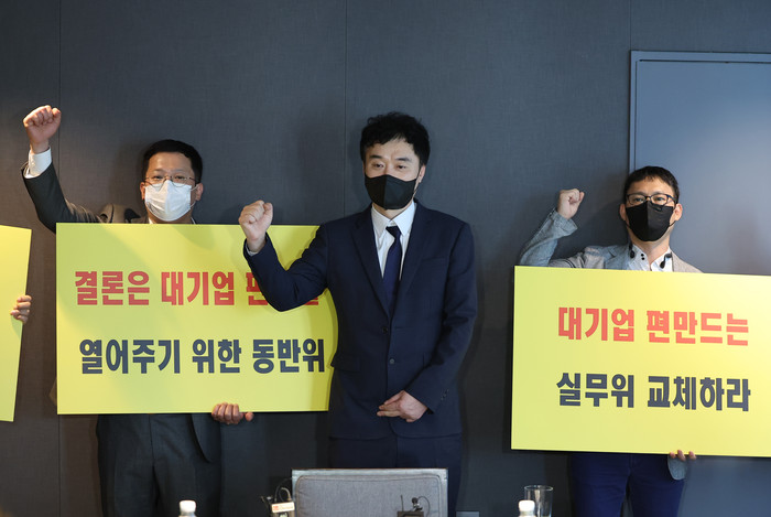 연합회는 이어 "중소·영세 사업자를 기만한 동반성장위 담당자와 대기업의 편에 선 동반성장위 실무위원회를 고발한다"며 "정부에는 동반성장위에 대한 특별 감사를 요청한다"고 덧붙였다.