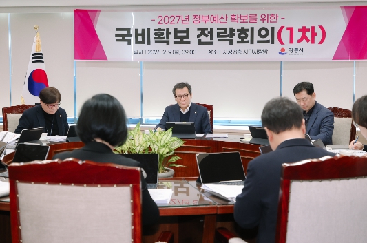 강릉시는 9일 월요일 김홍규 강릉시장 주재로 '제1차 국비확보 전략회의'를 실시하여, 핵심사업 완성을 위한 국비확보 총력추진을 위해 2027년 목표액을 지난해 4,771억 원에서 329억 원 증액된 5,100억 원으로 하고,
