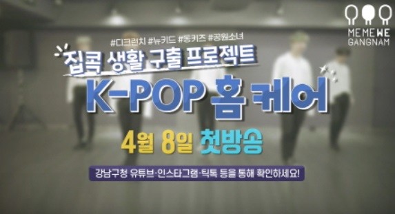 K-POP 홈케어는 강남구의 연예 기획사들이 국가적 위기를 함께 극복하자는 취지에서 재능기부로 이뤄졌으며, 아이돌 그룹 디크런치·뉴키드·동키즈·공원소녀가 우선 참여한다.