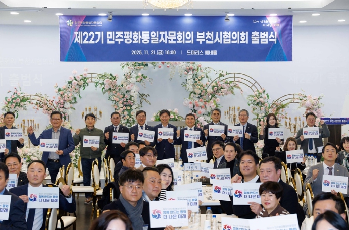 [코리아 이슈저널=홍춘표 기자] 김병전 부천시의회 의장은 21일, 드마리스 상동점에서 열린 제22기 민주평화통일자문회의 부천시협의회 출범식에 참석했다.