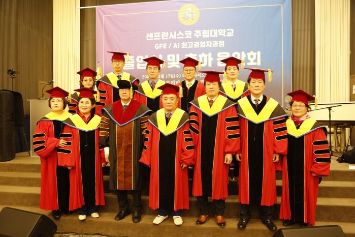 샌프란시스코 주립대학교 GFE AI 최고경영자과정 수료식을 더리버사이드 호텔에서 17일 성료했다. 이 행사에 여의도 이치과의원 이지형박사 GFE 자문위원장이 개회선언을 했다. 이어서 김재덕 GFE 이사장이 격려사, 진성용 GFE 원장 권면사를 했다. 문형남 숙명여자대학교 글로벌융합대학 학장은 축사자로 이 날 수료자들을 축하했다.