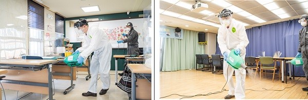 지난 30일 강동구는 관내 전문 소독업체인 사회적기업 ㈜한누리 방역팀과 함께 강동구립 ‘해공노인복지관’과 ‘곡교경로당’을 방문하여 긴급 시설 방역을 실시하고 시설 이용 어르신들에 대한 위로 및 방역수칙 준수를 당부하는 등 어르신들의 불안감 해소에 나섰다.