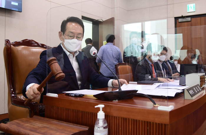 | ▲ 김도읍 국회 법제사법위원장이 6일 오후 국회에서 열린 법제사법위원회 전체회의에서 종합부동산세법(종부세법) 일부개정법률안 등 안건 상정을 위해 의사봉을 두드리고 있다. 2022.9.6 [국회사진기자단] |