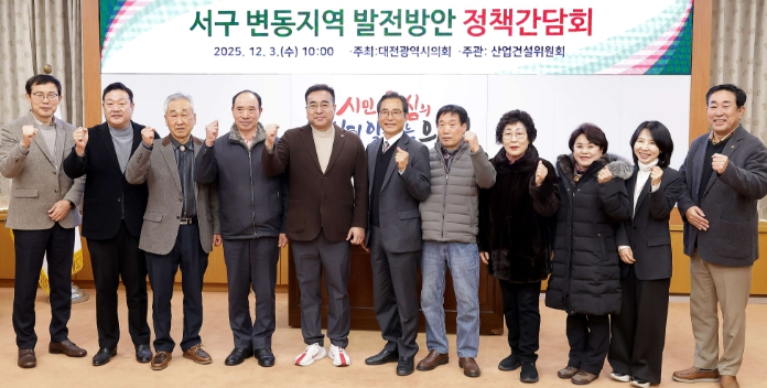 [코리아 이슈저널=홍춘표 기자] 대전시의회 산업건설위원회 김영삼 의원(국민의힘, 서구2)은 3일 대전시의회 소통실에서 ‘변동지역 발전방안 정책간담회’를 열고 주민들과 주요 현안을 논의했다.