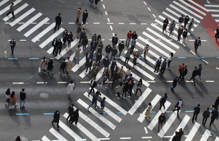 | ▲ 단계적 일상회복(위드 코로나) 1단계 시행 첫날인 1일 서울 종로구 한 교차로에서 점심시간 직장인들이 횡단보도를 건너고 있다. 2021.11.1 [연합뉴스 제공] |
