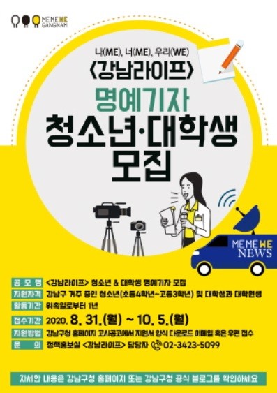 강남구, 청소년·대학생 명예기자 20명 모집