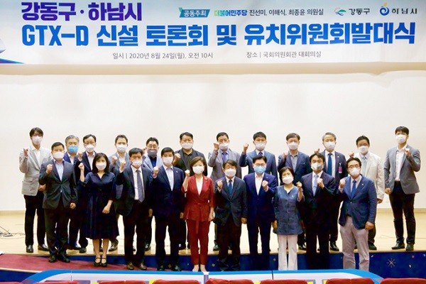김시곤 서울과학기술대학교 교수의 발제로 시작된 토론회에는 서울시 도시교통실, 경기도 철도항만물류국, 한국교통연구원, 서울연구원, 강동 갑·을과 하남시 주민대표 각 1인이 토론자로 참여했다. 이어, 강동구·하남시 GTX-D 노선 공동 유치위원회 발대식에서는 유치위원회의 사업 목표와 조직 구성 소개, 결의문 낭독, 단체결의 퍼포먼스 등이 진행됐다.