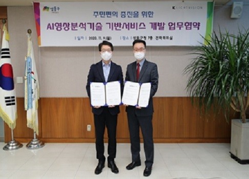 지난 9일 성동구청에서는 성동구와 기술개발업체 라이트비전(주)의 ‘AI영상분석기술 기반서비스 업무협약’ 체결식이 있었다. 지난 4월 구와 민간기업 라이트비전, 코멕스가 컨소시엄을 구성해 과학기술정보통신부 주관 ‘2020년 민간 지능정보서비스 확산 공모’ 에 선정된 ‘영상정보를 활용한 인공지능기반 주차공유 서비스’ 사업의 추진을 위해서다.