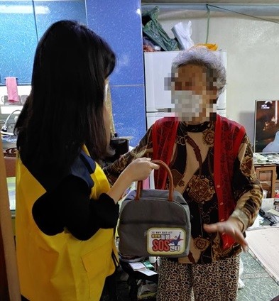 | ▲ 돌봄 대상 주민 가정으로 따뜻한 죽을 배달하고 있는 모습[출처=종로구청] |