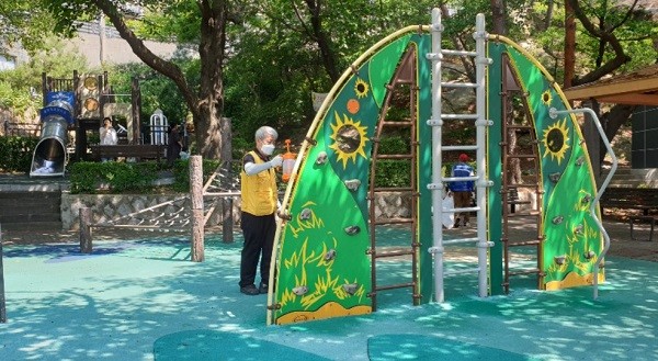 | ▲ 어린이놀이시설 방역[출처=종로구청] |