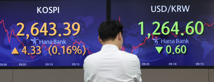 | ▲ 28일 오전 서울 중구 하나은행 딜링룸 전광판에 코스피 등 지수가 표시되고 있다. 이날 코스피 지수는 전 거래일 대비 17.48포인트(0.66%) 오른 2,656.54에, 코스닥 지수는 4.25포인트(0.47%) 오른 900.43에 개장했다. 원·달러 환율은 0.2원 내린 1,265.0원에 개장했다. 2022.4.28 |