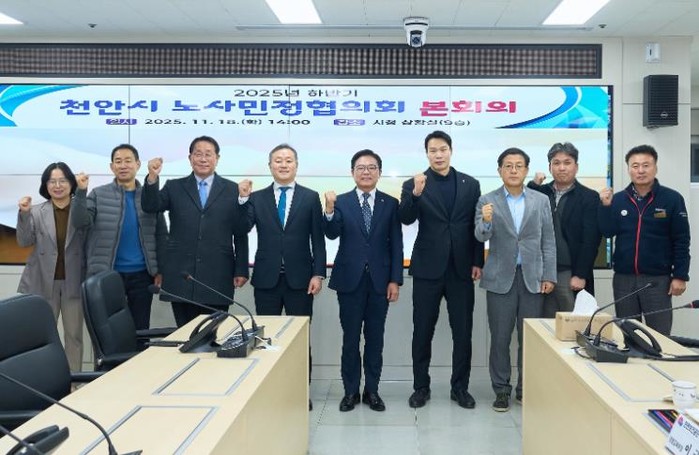 [코리아 이슈저널=홍종수 기자] 천안시 노사민정협의회는 18일 시청 재난안전상황실에서 ‘2025년 하반기 노사민정협의회 본회의’를 개최했다.