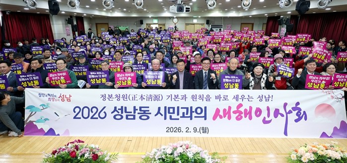 [코리아 이슈저널=홍춘표 기자] 성남시의회는 9일 중원노인종합복지관 1층 중원마당에서 열린 성남동 새해인사회에 참석해 2026년 새해를 맞아 지역 주민들과 소통의 시간을 가졌다.