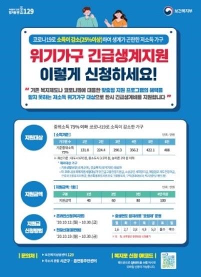 신청은 10월 30일까지 복지로(www.bokjiro.go.kr) 사이트와 모바일(m.bokjiro.go.kr)에서 세대주가 할 수 있다.
