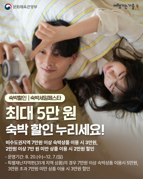 문화체육관광부, 최대 5만 원 숙박할인 누리세요!