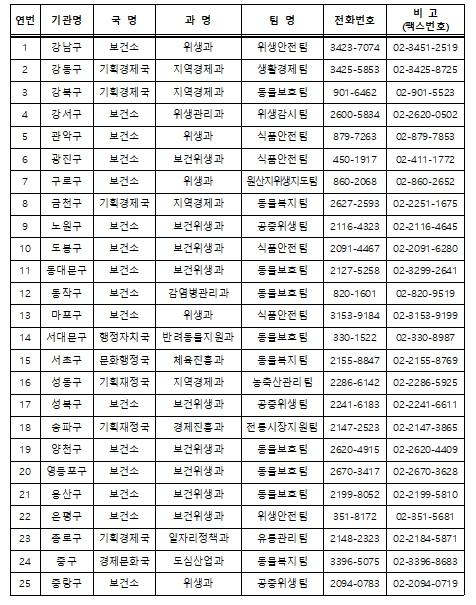 ▲ 우리동네 모범 정육점 인증신청 자치구 접수부서 |