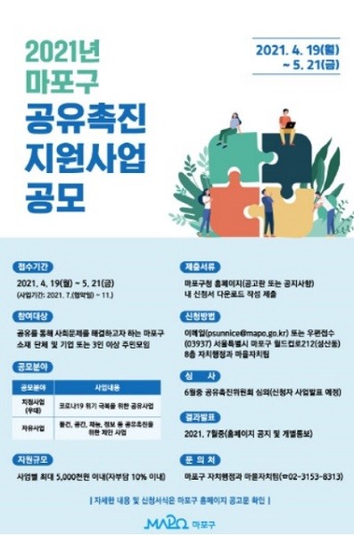 마포구, '마포구 공유촉진 사업' 공모