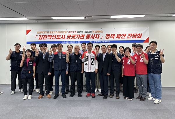 [코리아 이슈저널=홍종수 기자] 송언석 국민의힘 중앙선거대책위원회 경제재건축위원장(경북 김천시 국회의원)은 5월 28일 오전 11시, 김천혁신도시 내 한국전력기술 본사 4층 대회의실에서 ‘김천혁신도시 공공기관 종사자 정책 제안 간담회’를 개최했다.