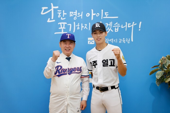 이정선 교육감은 “김성준 선수의 텍사스 레인저스 입단은 광주의 명예를 높이고, 야구 종목 학생 선수들에게 큰 자부심을 줬다“며 “광주에서 많은 체육 인재가 배출될 수 있도록 학교운동부 지원을 확대하겠다“고 말했다.