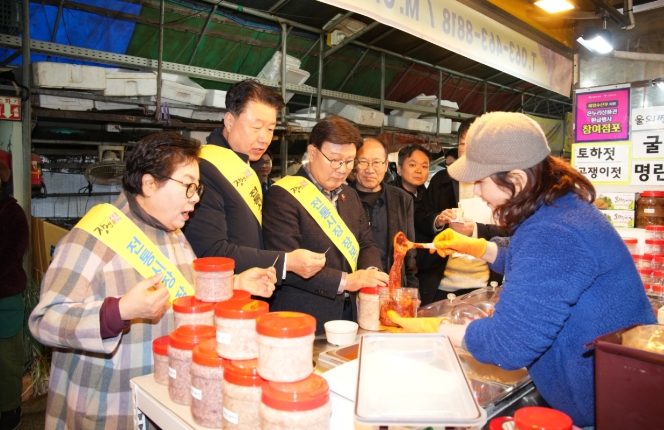 [코리아 이슈저널=홍춘표 기자] 전북특별자치도의회는 설 명절을 앞둔 10일 군산 주공시장을 방문해 전통시장 상인들을 응원하며, 시장 활성화를 위한 장보기 행사와 이용 캠페인을 진행했다.