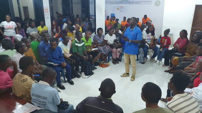 | ▲신천지예수교회 다대오지파 아프리카 라이베리아지역 센터에서 한 수강생이 수업 때 배운 내용을 스피치하고 있다. |