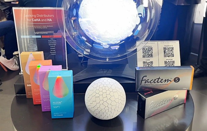 독자적으로 마련된 전시 부스에서는 ▲콜라겐 스티뮬레이터 페이스템을 비롯해, ▲히알루론산 기반 필러 '에일린', '지젤리뉴', ▲PDO 소재 봉합사 '럭스', '두스' 등 주요 에스테틱 제품군이 함께 전시 및 소개됐다.