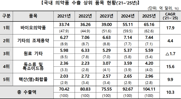 25년 의약품 수출액 첫 100억 달러 돌파
