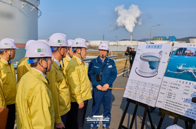 [코리아 이슈저널=최성일 기자] 이재명 대통령은 오늘 오후 충남 서산시 대산읍에 위치한 한국석유공사 서산비축기지를 방문해 비축유 관리 상황을 점검하고 주요 석유화학기업들과 현장 간담회를 가졌다.